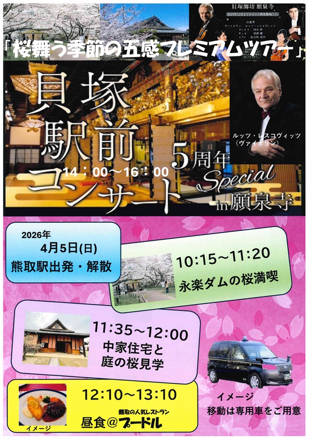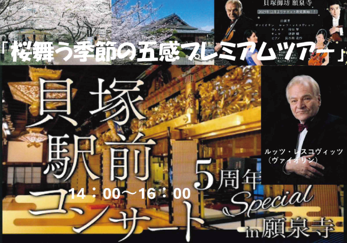 午後は、貝塚駅前の願泉寺で開催されるスペシャルコンサートを観賞し、身も心もリフレッシュ!