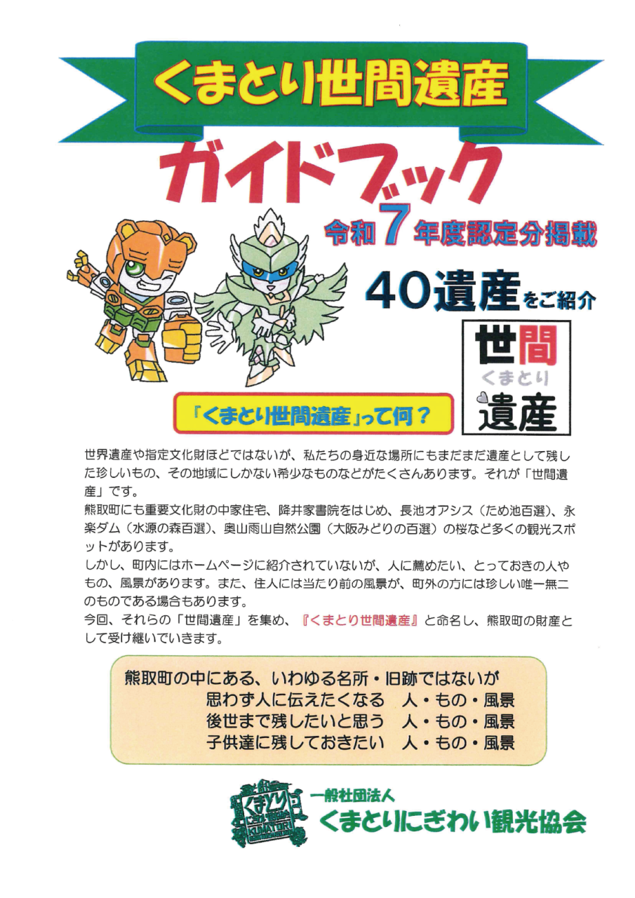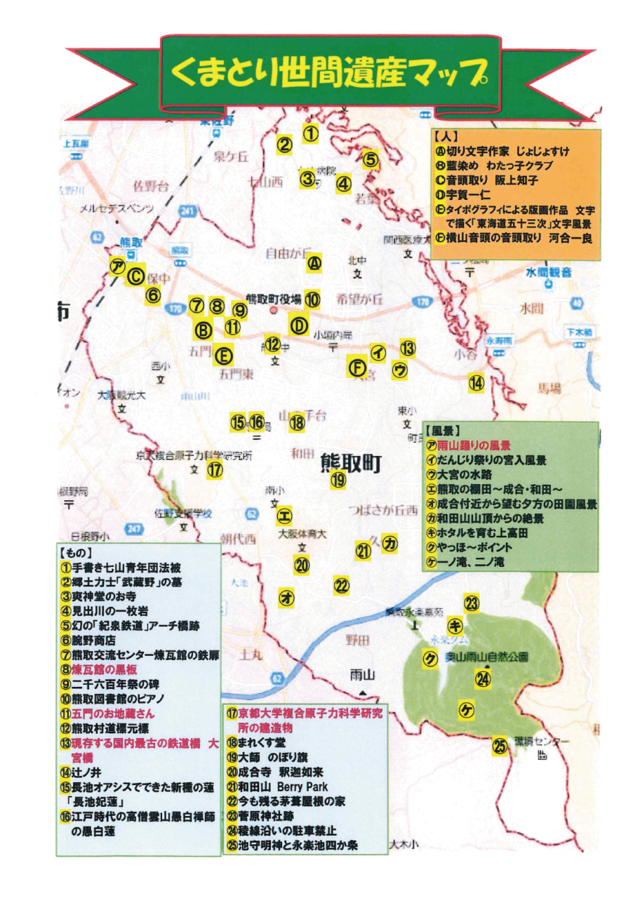 今回、それらの「世間遺産」を集め、 『くまとり世間遺産』 と命名し、熊取町の財産