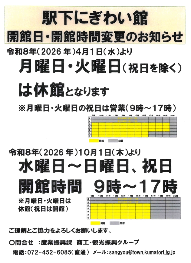令和8年度 駅下にぎわい館の開館に関する日時が変更になります。